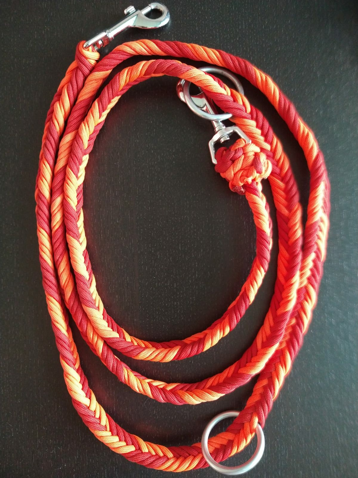 Hondenriem rood en oranje, visgraat L = 2,20 meter